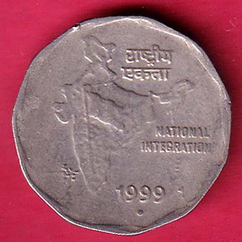 REPUBLIC INDIA 1999 “ERROR” 2 RUPEES 9 O’CLOCK COIN – F6417