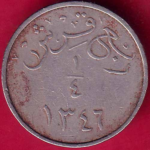 Saudi Arabia 1346 Abd al-Azīz 1/4 Qirsh – Plain Edge Rare Coin – FB2289