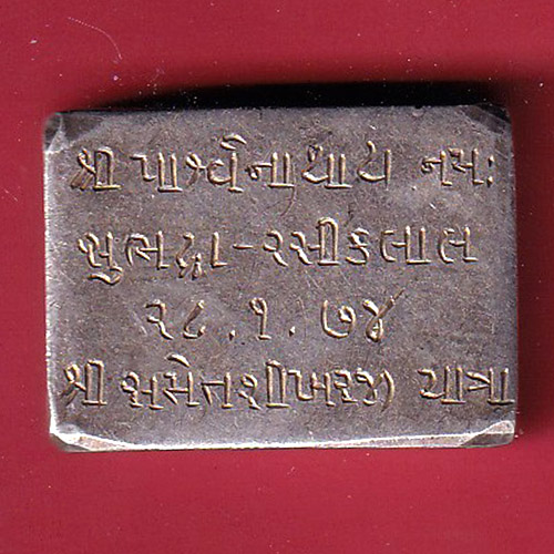 Silver bar : Shree pasvenath pulaksh Rasiklal 18/1/74– FC7884