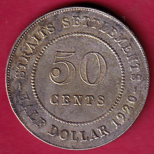 STRAITS SETTLEMENTS 1920 GEORGE V KING AND EMPEROR OF INDIA HALF DOLLAR 50 CENTS – FB6664