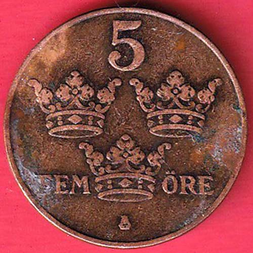 Sweden 5 Öre – Gustaf V COPPER COIN – FC6218
