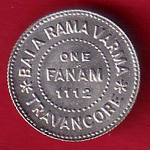 “UNC” BALA RAMA VARMA TRAVANCORE ONE FANAM 1112 silver COIN– FC8345