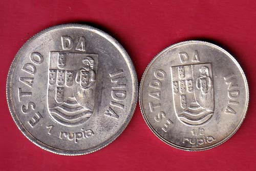 “UNC” PORTUGUES INDIA 2 COINS SET: ONE RUPIA N HALF RUPIA BEAUTIFUL SILVER COIN –FC8060