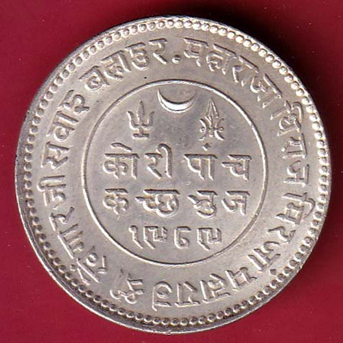 “WITH BEAUTIFUL CONDITION” kutch state 1932 /1989 shree KHENGARJI 5 kori silver coin – FC7729